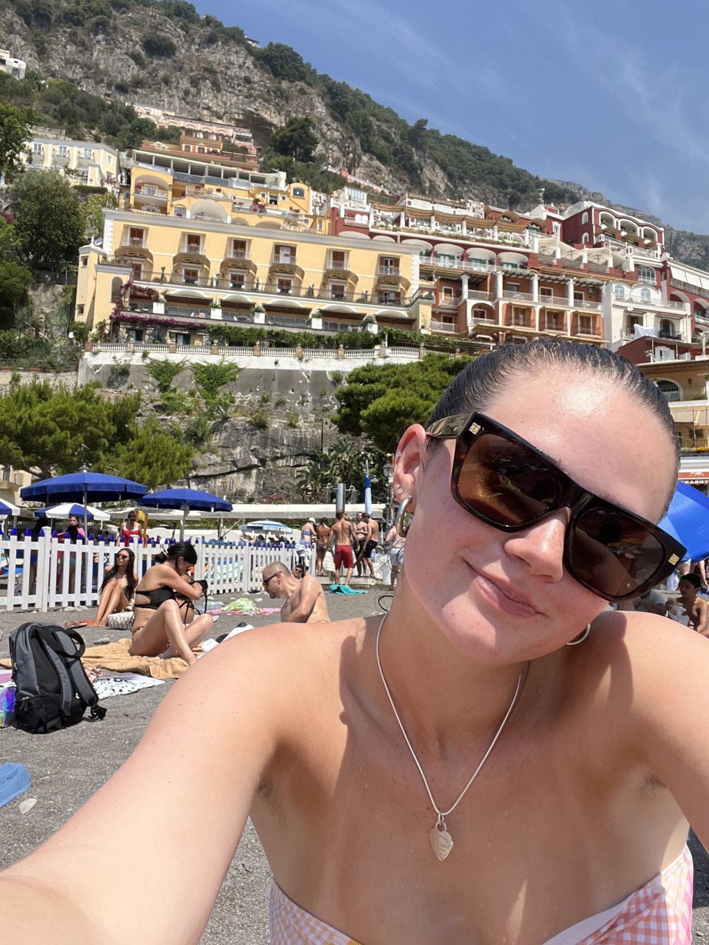 The beach was stunning. We sat at the beach for just 20 minutes, though, because it was unbelievably hot. The dark sand was also scorching, and as much as the cool water of the Tyrrhenian Sea was perfect for cooling off, the heat was hard to withstand in the middle of July. But swimming was an absolute fantasy – looking around at the magical views of the city built up around me was fascinating and so memorable.