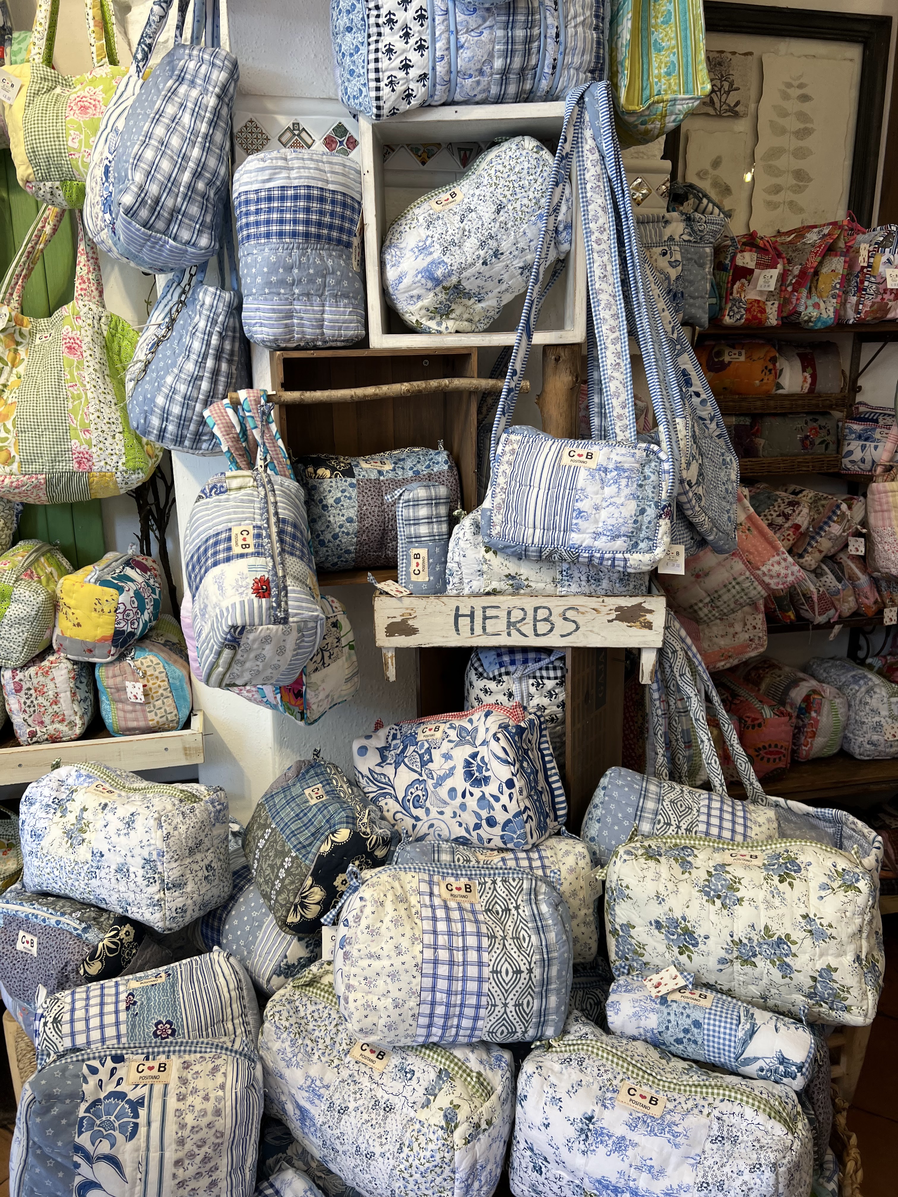 Shopping there was actually really difficult considering I wanted everything I saw. Their bags range from small zip up pouches to makeup bags, duffle bags of all sizes and tote bags, and they range in price from $25-$100. Check out the blue bag collection below. I bought one of the small blue duffle bags and its so special because it’s different than anything else I own.