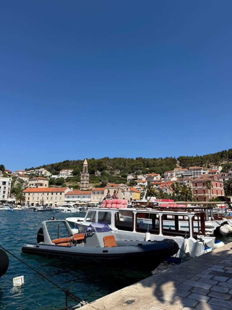 Hvar is one of the Dalmatian Islands off the coast of Croatia. It’s sunny, bright, and blue.