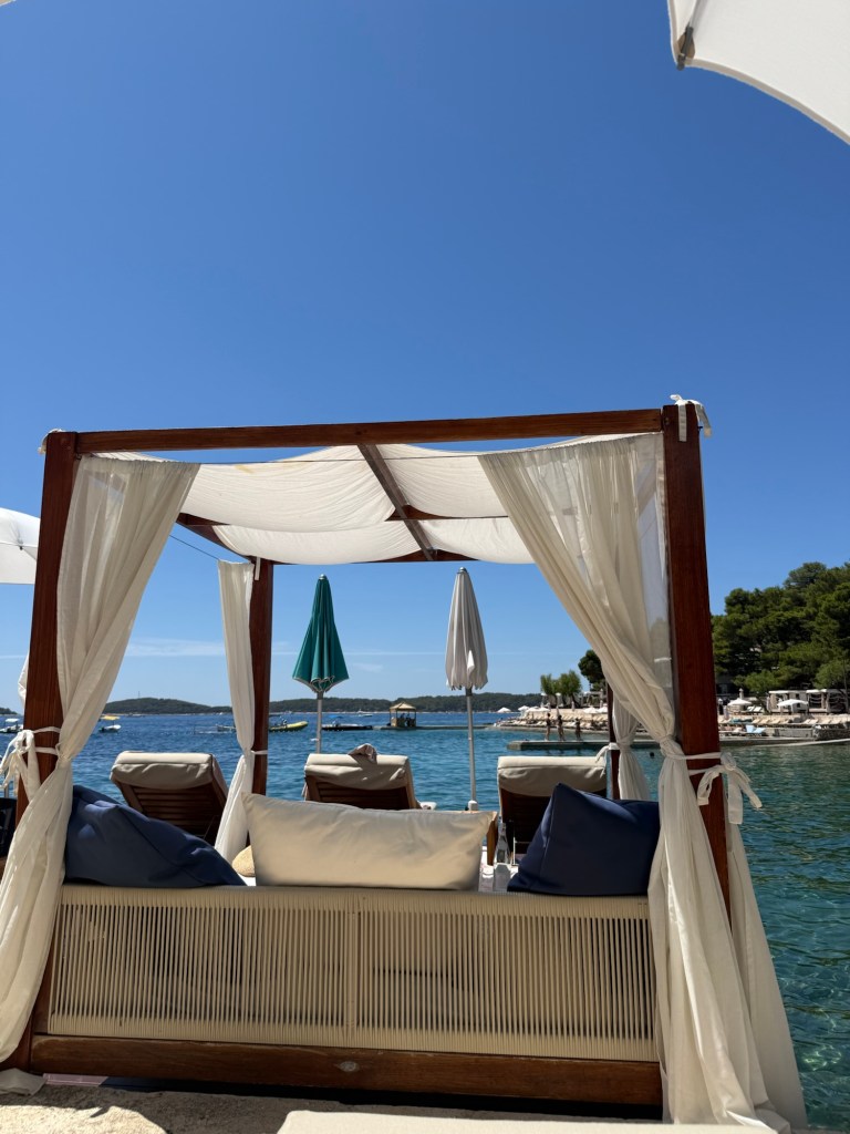 Make sure you book your reservation at Beach Club Hvar in advance! A single bed is 60 euros for the day, and most have a front row view of the water.